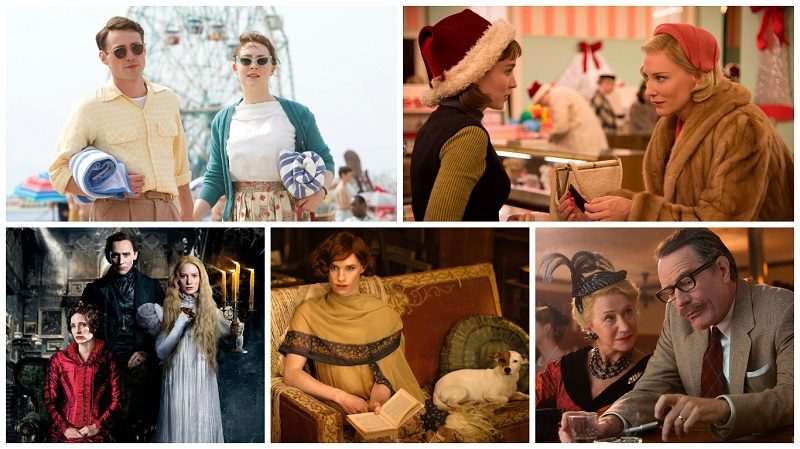 É o mesmo caso de Carol, dirigido por Todd Haynes e que também tem um orçamento enxuto e um figurino competente desenhado por Sandy Powell. Logo na cena em que as duas protagonistas se conhecem, é estabelecido o uso predominante de verde para Therese e vermelho para Carol. Essas são cores complementares, que declaram que as duas combinam em sua oposição. Essa percepção é garantida pelo contraste entre as roupas em estampas xadrez e boinas, que remetem à roupa escolar que a primeira utiliza, e às peles e à sofisticação da segunda. As diferenças de classe social e de idade são, dessa forma, estabelecidas. Com o avançar da trama, Therese amadurece e a qualidade e estilo de suas roupas se alteram. O figurino é essencial para expressar o romance entre as personagens, bem como sua trajetória. Nessa categoria, é o trabalho de minha preferência, mas se Brooklyn ou A Colina Escalate tivessem levado o prêmio, não teria oposição.