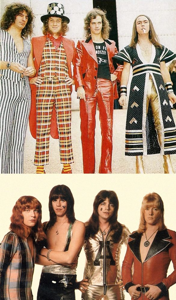 Em cima, a banda Slade em data não determinada e embaixo, a banda Sweet em 1973