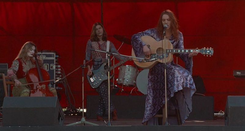 Mandy (Toni Collete), esposa de Brian, acompanha os estilos de cada época, mas seu apreço é por brilho, peles e estampas de oncinha. Quando conhece Brian ela veste um vestido prateado, mas quando ele se apresenta no festival, muda para um estilo pós-hippie com gola de pelos, adaptando-se melhor ao que se espera no local. Na primeira turnê de sucesso, ela usa uma roupa que combina com a dele, novamente mostrando apoio à carreira de seu companheiro.