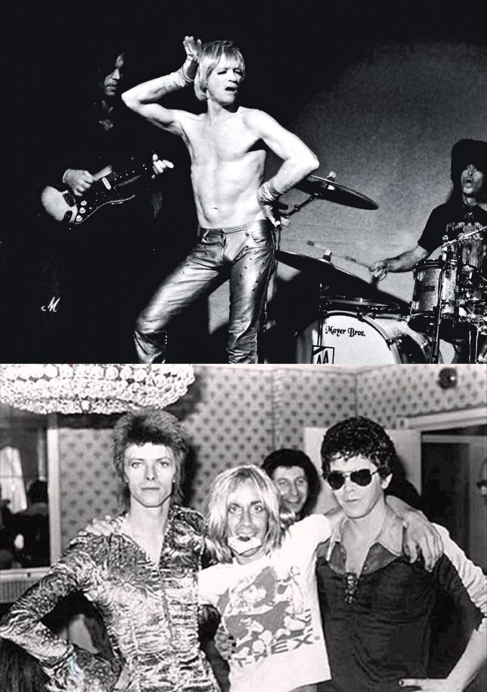 Em cima, Iggy Pop e embaixo, da esquerda para a direita, David Bowie, Iggy Pop e Lou Reed