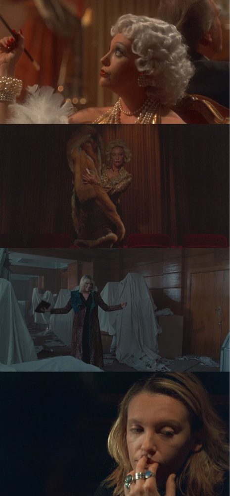 O auge é marcado por roupas que mais parecem fantasias, um volumoso casaco de pele e um sobretudo de oncinha em duas cores. Já o anonimato é marcado por trajes pretos e nenhuma maquiagem, ainda que com muitos acessórios.