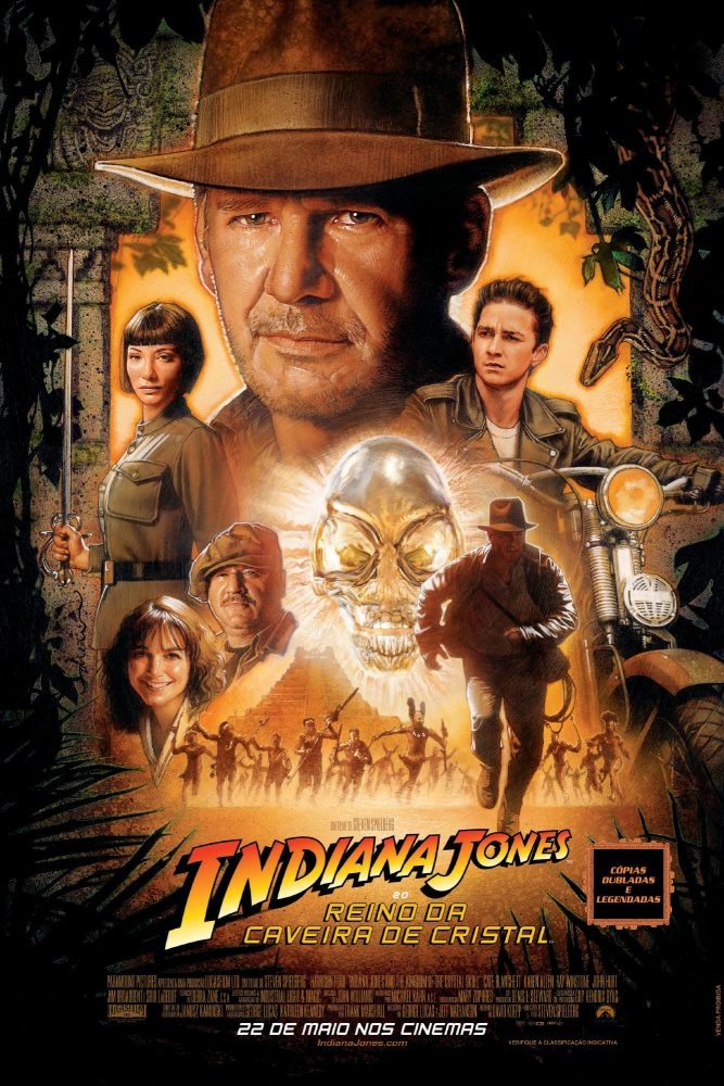 Dirigido por Steven Spielberg. Com: Harrison Ford, John Hurt, Ray Winstone, Karen Allen, Shia LaBeouf, Jim Broadbent, Igor Jijikine, Cate Blanchett.