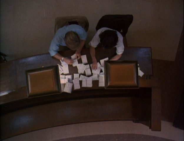 O desafio enfrentado por Hoffman e Redford nesta produção, vale notar, é imenso, já que a vida pessoal de seus personagens jamais entra na equação: o que importa para o filme é a atuação profissional de Bernstein e Woodward e, assim, as únicas pistas que temos sobre suas personalidades residem nos detalhes das composições dos dois atores. Observem, por exemplo, como Bernstein sempre caminha velozmente, mantendo-se à frente de Woodward, e imediatamente constatarão que aquele é o mais afobado e ansioso dos dois – algo que podemos confirmar no instante sutil em que o segundo rapidamente limpa as cinzas de cigarro derrubadas no sofá de um informante pelo primeiro. Da mesma maneira, ao passo em que Bernstein exibe pouca hesitação ao pressionar suas fontes, Woodward se mostra sempre mais cauteloso e até mesmo respeitoso – e a dinâmica perfeita estabelecida pelas diferenças entre os dois jornalistas pode ser constatada pela maneira com que trocam observações e até mesmo simulam discussões diante dos entrevistados com o objetivo de extraírem mais informações.