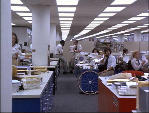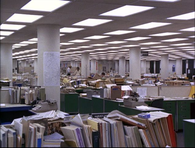 Outro acerto do cineasta reside na utilização eficaz das locações, como na cena que se passa em um terraço e traz Washington ao fundo ou mesmo no plano plongé impressionante que descortina o interior da Biblioteca do Congresso – e a garagem na qual Woodward mantém seus encontros com o “Garganta Profunda” também prima pelo emprego preciso das sombras. Aliás, todo o design de produção de Todos os Homens do Presidente merece aplausos: a recriação da redação do “Washington Post” é fabulosa (e, como já dito, explorada ao máximo pelos travellings de Pakula) e demonstra imensa atenção aos detalhes, desde as manchas na usada máquina de escrever de Bernstein à roda de bicicleta situada ao lado de sua mesa e que ajuda a estabelecer o personagem como uma figura pouco convencional naquele meio.